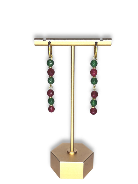 Red/Green Jade Stone Dangle Hoops