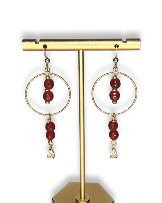 Red Jade Stone Circle Dangle Earrings