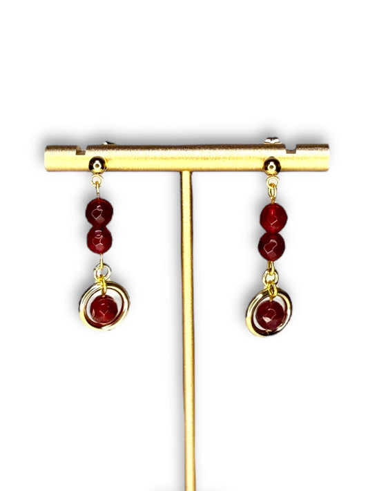 Red Jade Stone Mini Circle Dangle Earrings