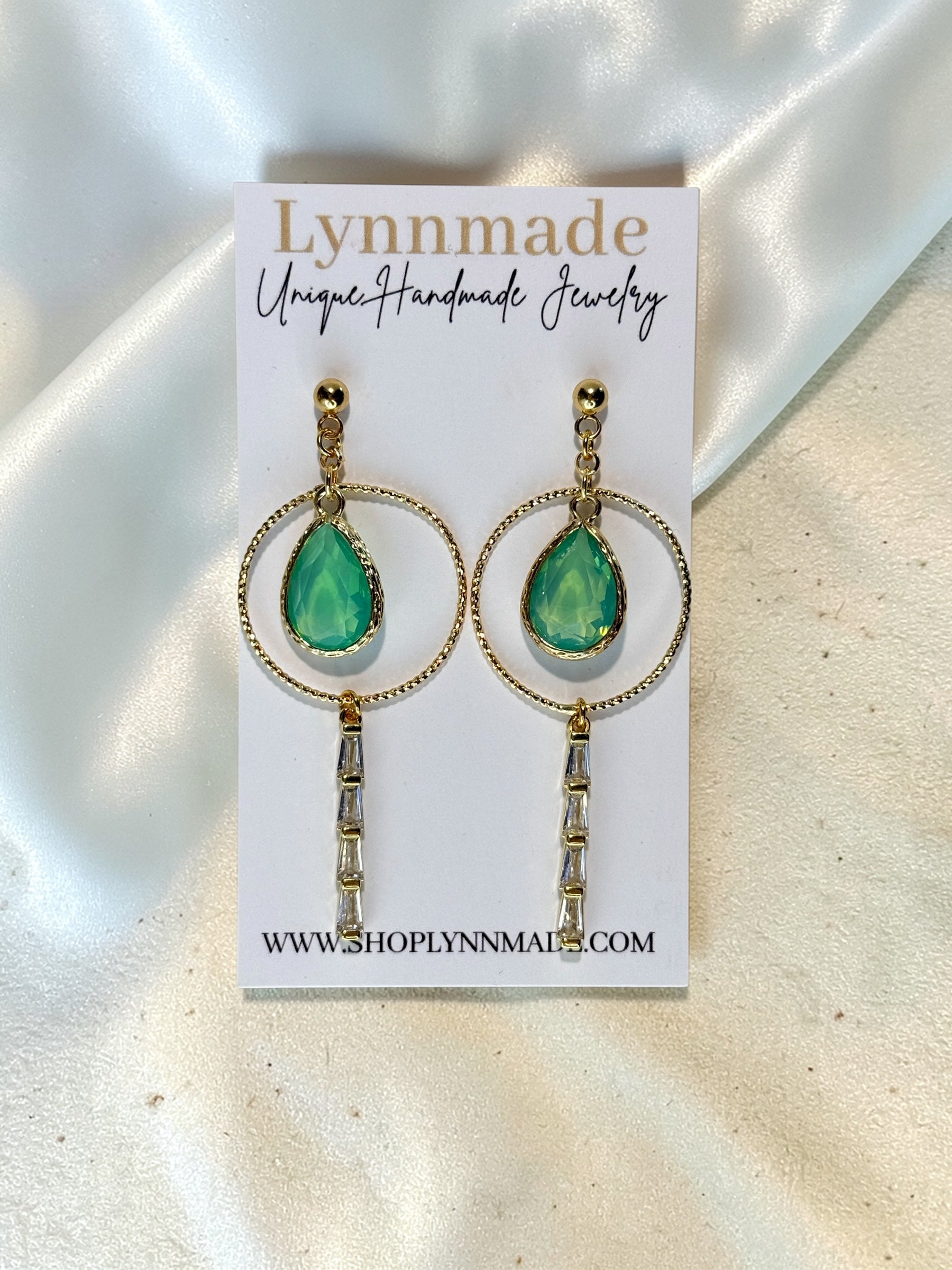 Please note: the green charm on these earrings may look slightly different depending on lighting. In bright light, it shines with a beautiful peridot-green hue.